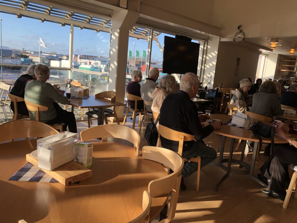 Vårt mycket intressanta studiebesök avslutades i cafeterian en våning upp där vi blev bjudna på kaffe med dopp.